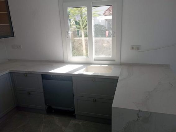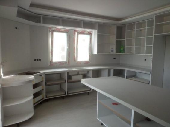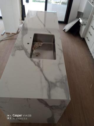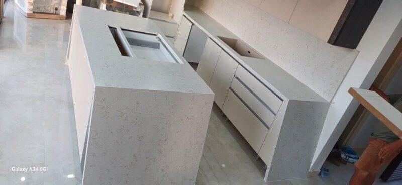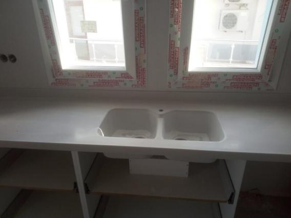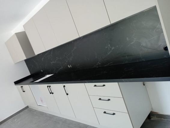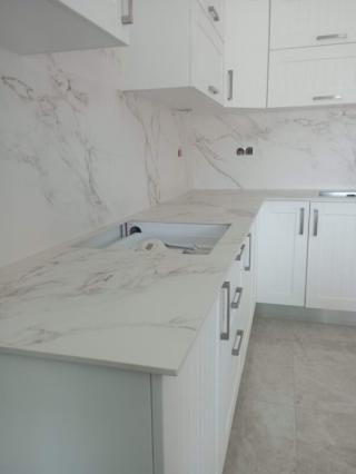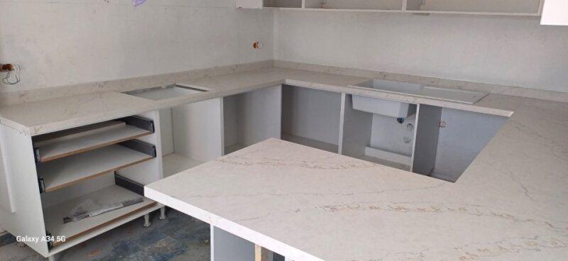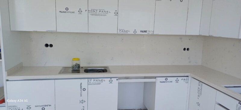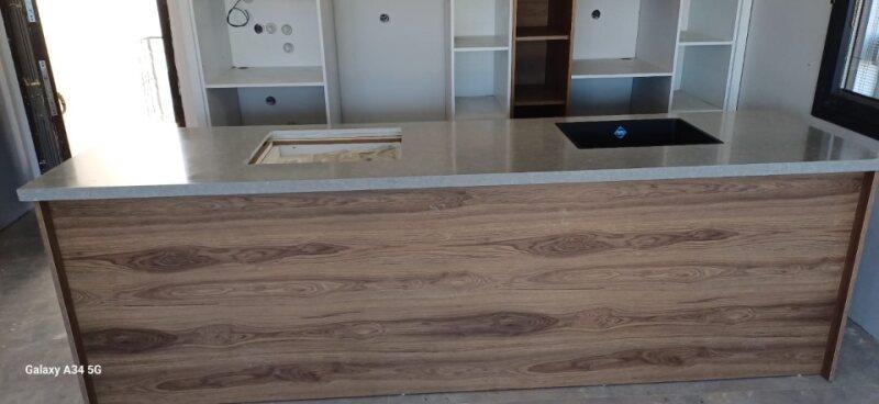 Kesit kalınlıkları, birleşim detayları ve kenar bitişleri; uzun ömürlü kullanım ve temiz bir görünüm sağlayacak şekilde titizlikle uygulanır. Tezgâhlar, sabit mobilya ve donatı elemanlarıyla uyum içinde kurgulanır.